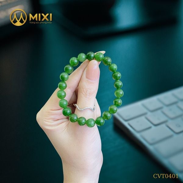Ngọc Bích Nephrite từ lâu được xem là biểu tượng của sự thuần khiết, may mắn và trường thọ. Vòng tay ngọc bích với hạt tròn 8mm là lựa chọn lý tưởng cho phái đẹp yêu thích phong cách thanh lịch, nhẹ nhàng nhưng không kém phần sang trọng.
